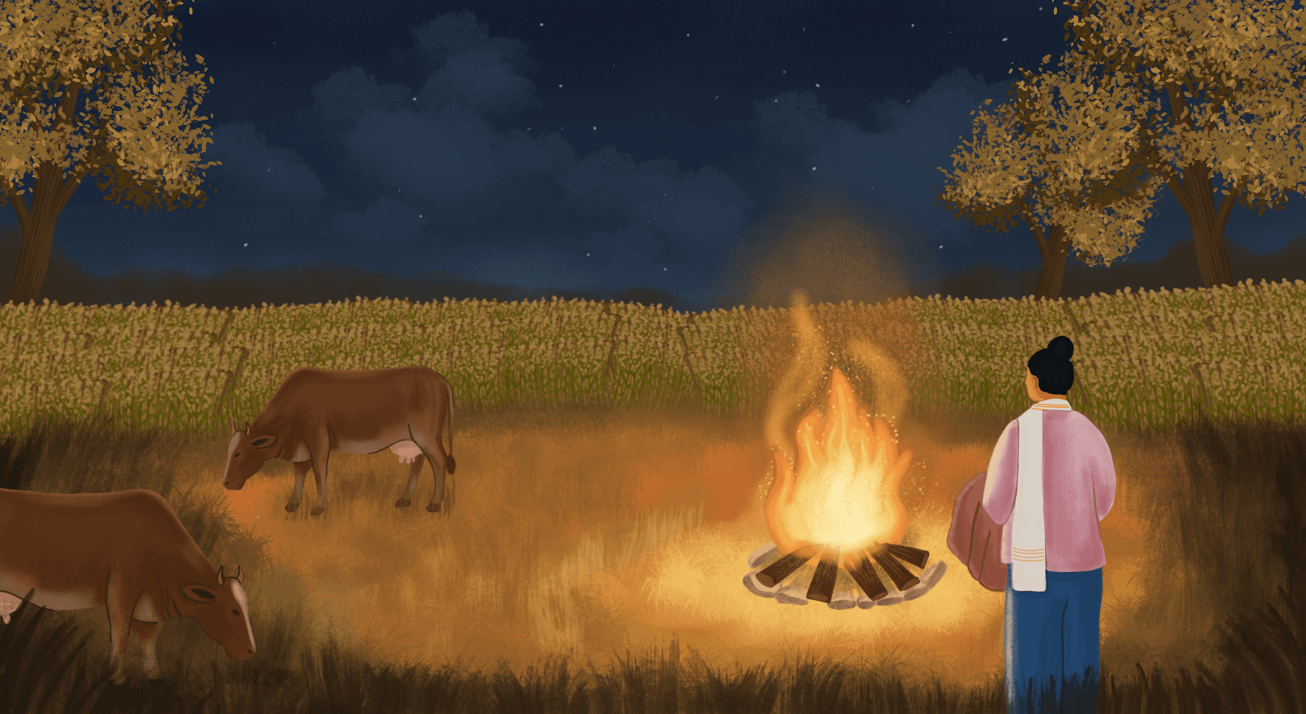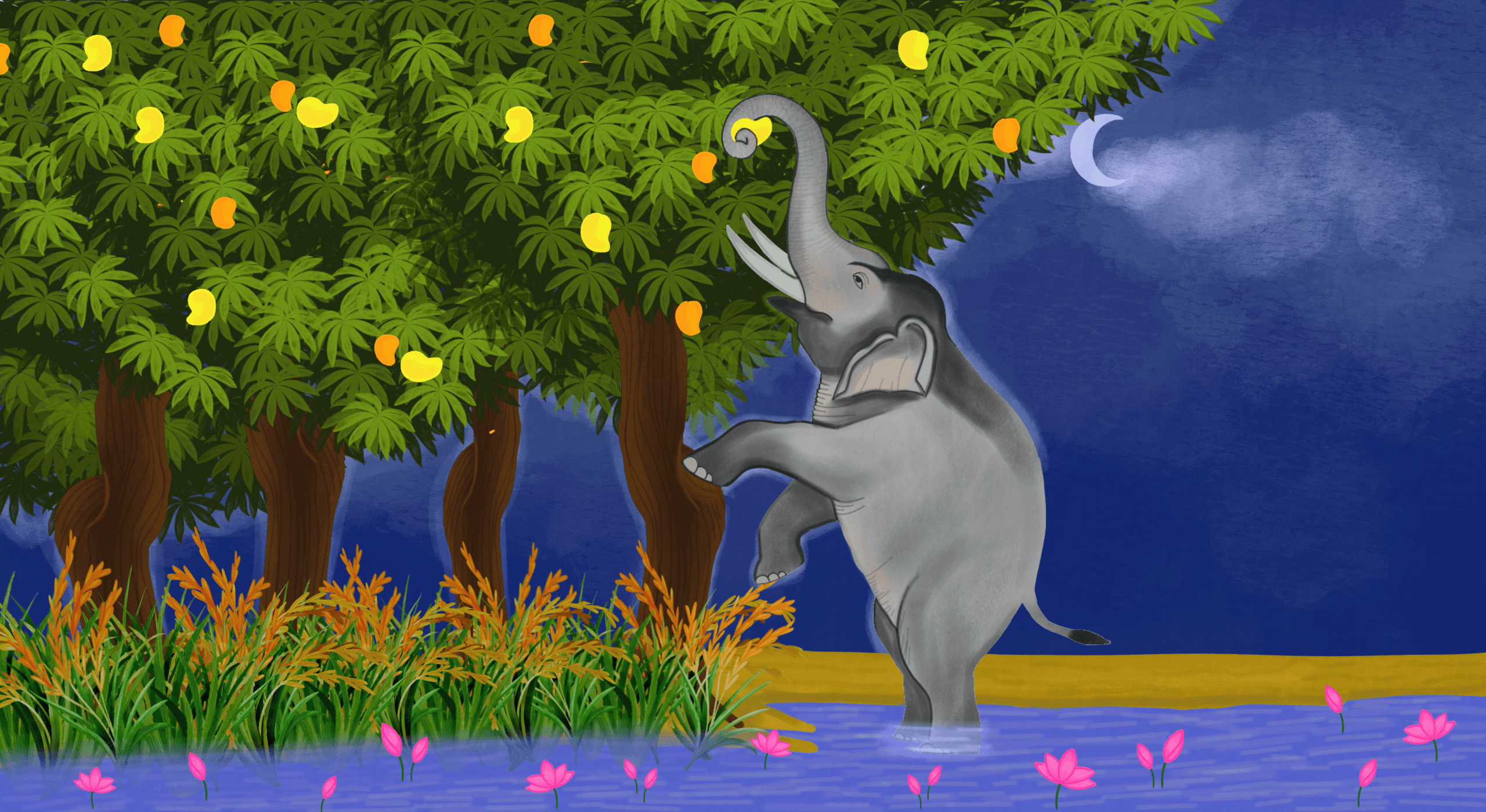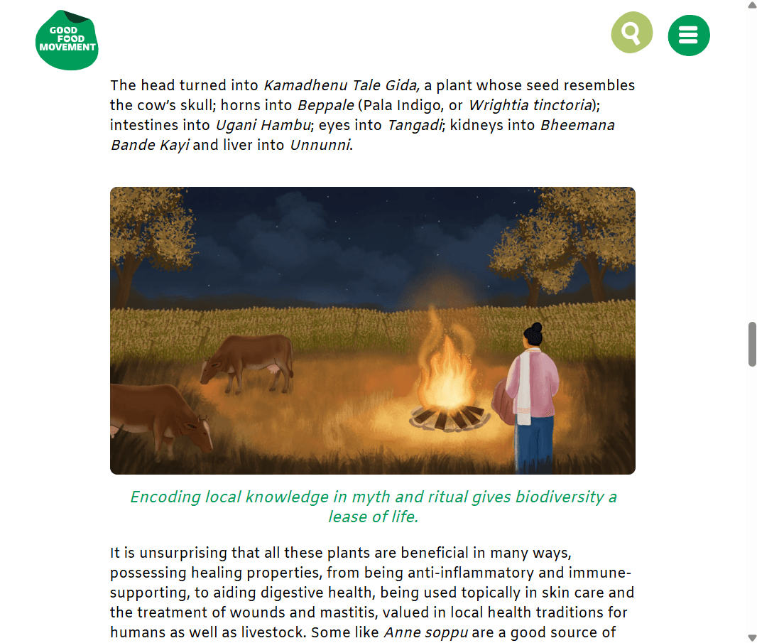 Khyati has been a reliable, consistent collaborator to work with, as she takes on illustration projects for the Good Food Movement on a freelance basis. She has sportingly worked on artworks that needed to be submitted with a quick turnaround, as well as more complex projects that required multiple rounds of feedback. I have been able to turn to Khyati for artworks about sombre subjects like floods and drought, as well as more positive ones like forest bathing and gardening—this showcases the range of her creativity.